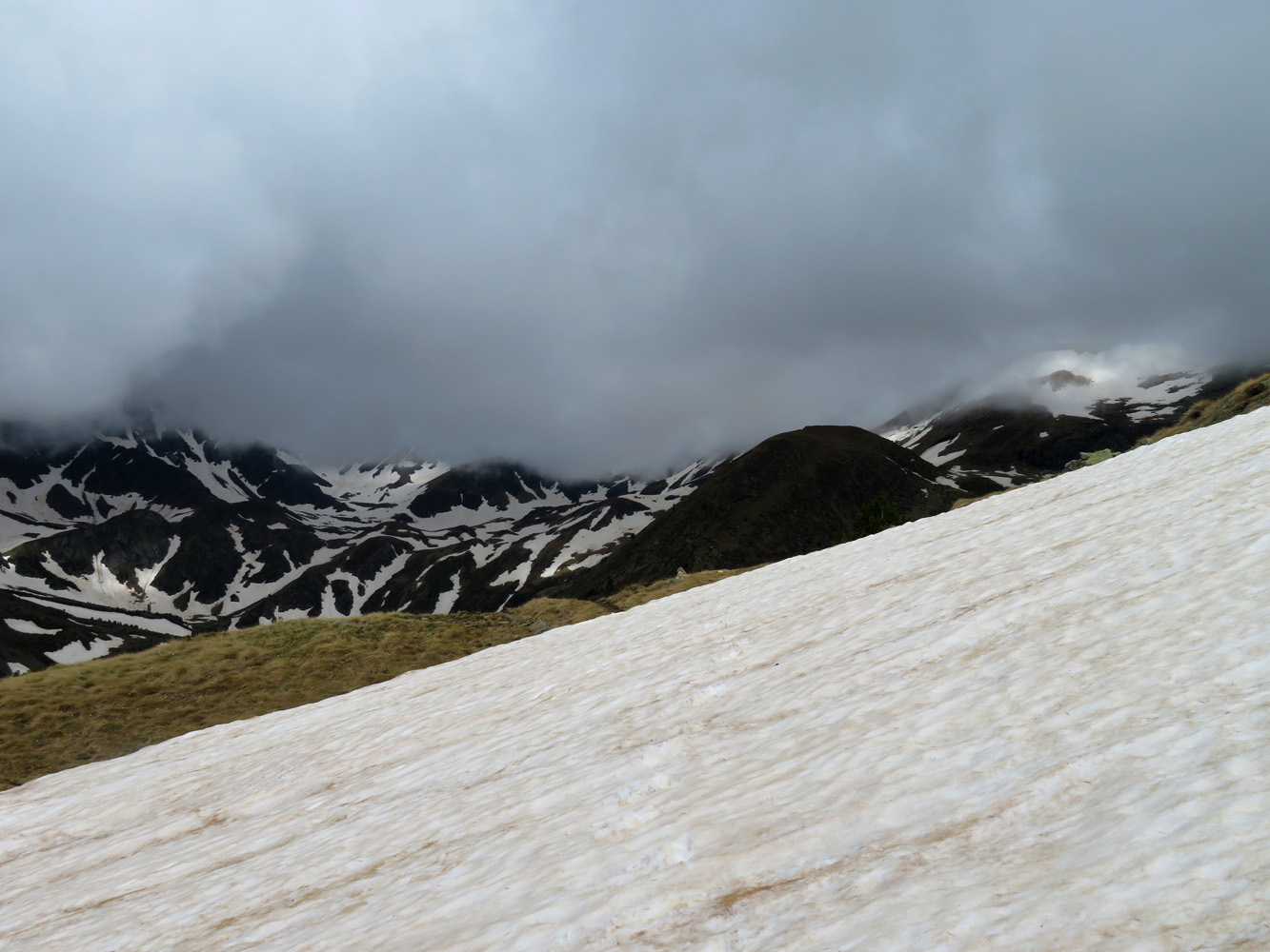 This was a strange trip. The weather forecast had called for sunny, warm weather, yet it turned out to be a nasty day. I had planned to do a traverse along the frontier ridge that separates Andorra from France north of the Ransol valley, but I didn’t get far.