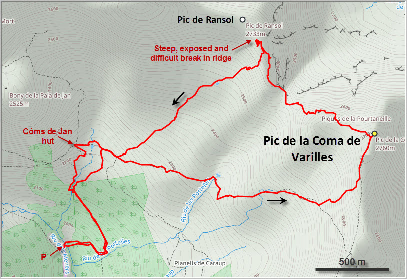 There are several sharp breaks in the ridge between Coma de Varilles and Pic de Ransol.