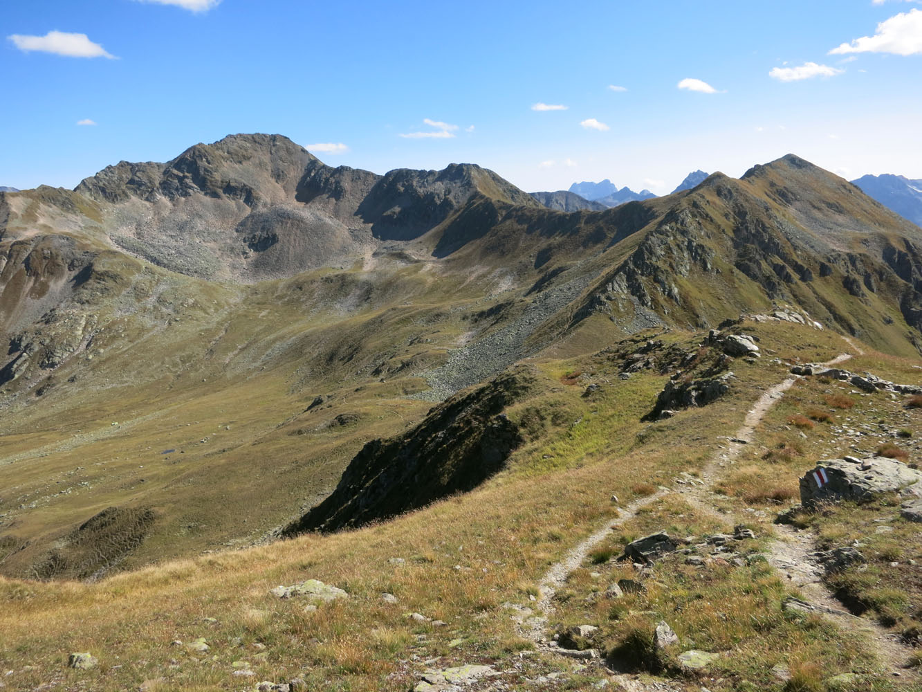 View towards the south: Piz Kesch is the highest at 3418 m (far left).