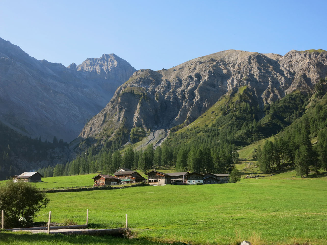 A wide track leads up the lovely Sertig Valley, turning into a hiking path higher up.