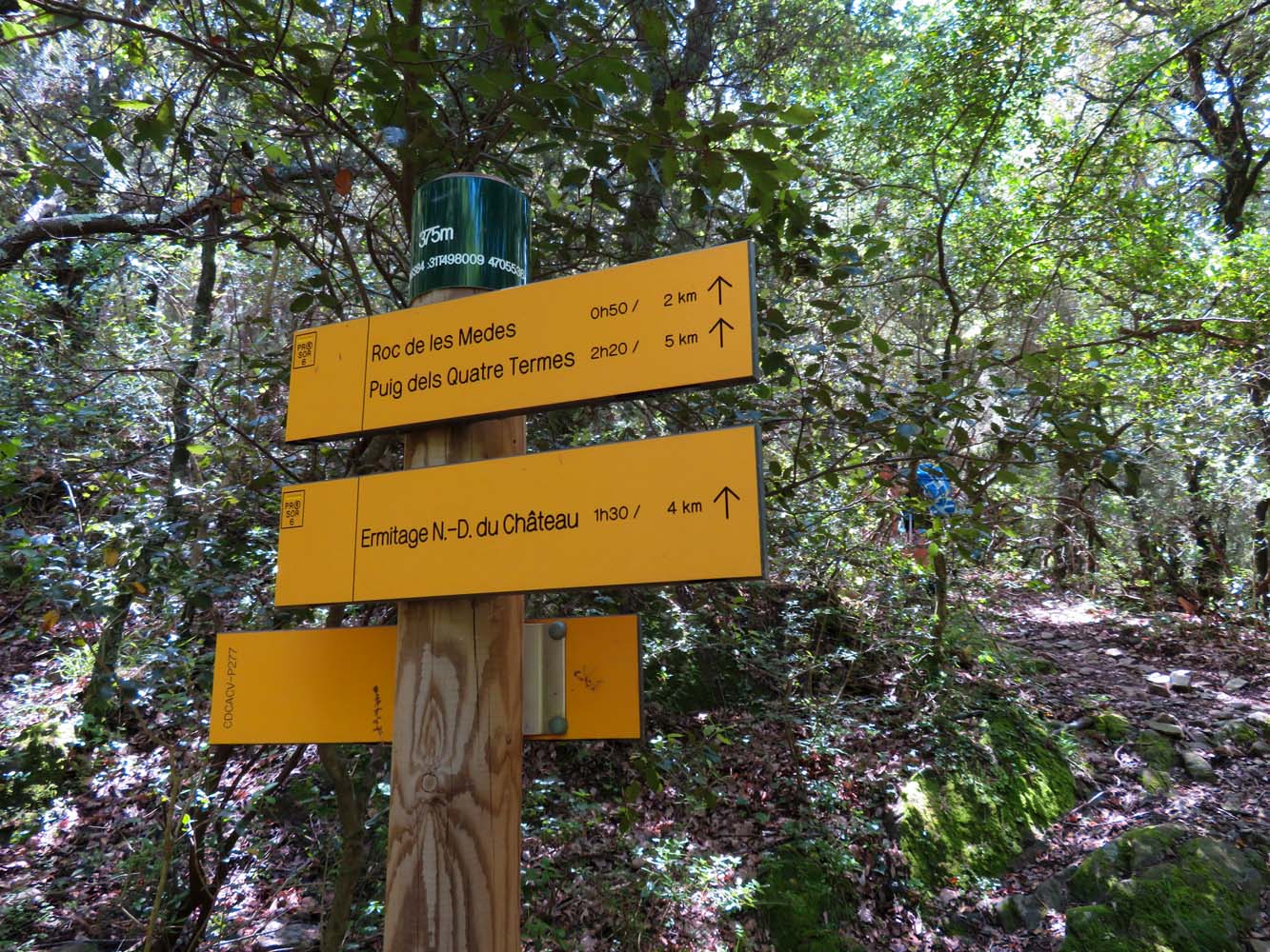 There are so many hiking possibilities here! Signs point in all directions: straight ahead is Puig de Pradets in the east, right is down the Spanish side, left down the French side.