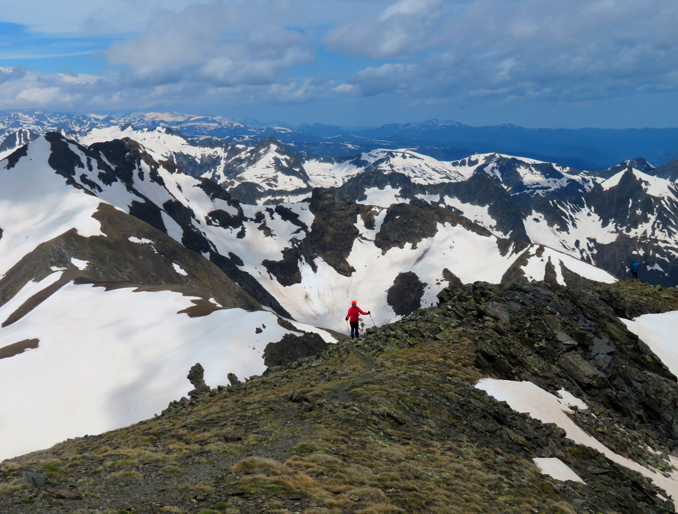 This is a great area for exploring. So many interesting peaks and ridges! The snow-covered mountain in the foreground is called Puig de la Portella Gran.