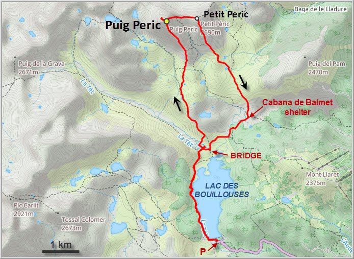 The morning arrived and we still weren’t sure whether we should give it a try. After all, we weren’t equipped for these types of conditions (no crampons or ice axe). Arriving at the turn-off for Carlit by the Lac des Bouillouses, we asked a group of Spanish hikers who just shrugged and pointed at another beautiful mountain instead. Puig Peric is where they were heading today. Peric? We’d never heard of it before, but we could see it right in front of us on the other side of the lake: an impressive looking peak with a long south ridge and a small sister peak sitting to its right.