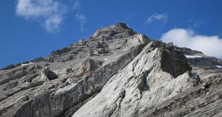 Mount Costigan is one of the highest mountains in the Ghost area and has several well-documented ice climbing routes around its approach valleys and buttresses. As a scrambling objective, curiously, the mountain has been largely overlooked. Although it can be reached via a good path along the north shore of Lake Minnewanka, the approach takes a long time and there are no trails on the mountain itself. Perhaps more telling is the fact that there aren’t any detailed published routes to the summit, in contrast to nearby Mount Aylmer which is covered in Kane’s Scrambles in the Canadian Rocky Mountains. As a result, Aylmer sees many ascents every year and has a beaten path leading all the way to the top.