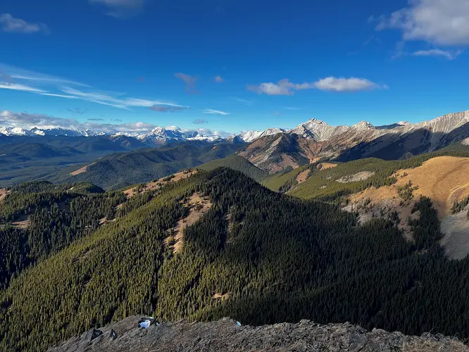 Considering the relatively low elevation of this “hill”, the summit views are quite amazing: The Continental Divide with Mount Armstrong and Baril Peak to the west steal the show, but Holy Cross Mountain, Mount Head, and Mist Mountain further north are also quite impressive.