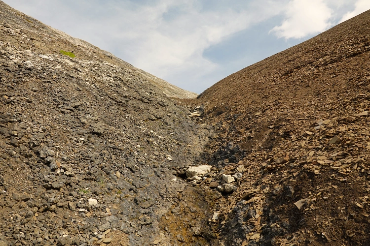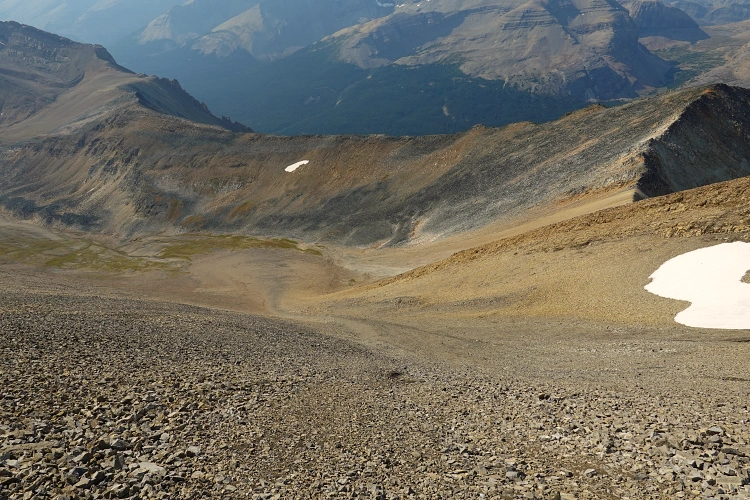 As anticipated, the scree slope on the mountain’s SW side has mostly fine shale that is easy to descend.