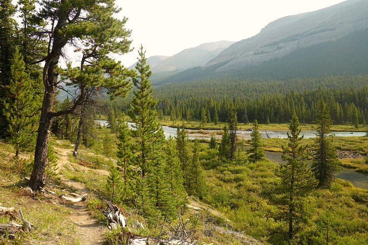 After 11 km of boring forest hiking, views of the Brazeau River open up again.