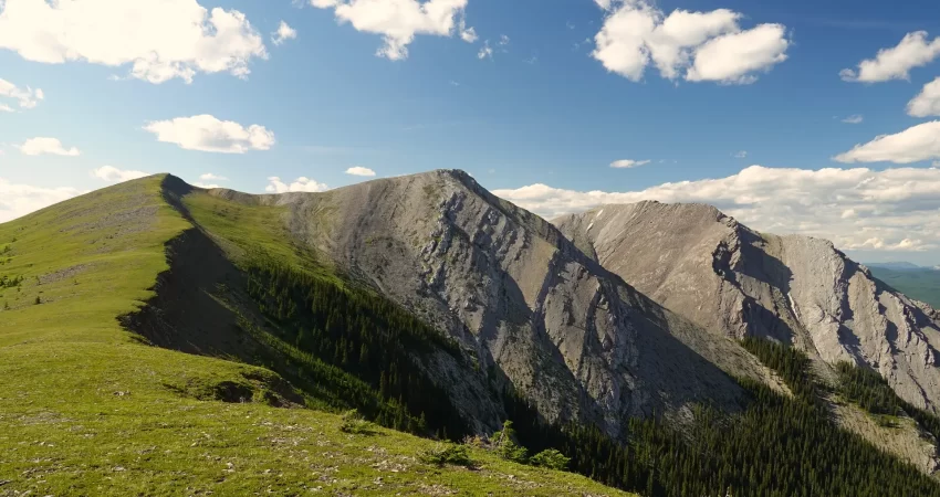 There were no major hurdles and almost all of the route to Crescent was a hike, with a few sections of easy scrambling thrown in. Occasional goat trails made it easier to navigate around bands of broken up rock. At the low point along the ridge, almost half-way between the two peaks, I came across an old, flat cairn that looks like it marks the point where you could descend down the east side of the ridge if you had to bail. On the west side the slopes are gentle and grassy, and in theory you could hike down that valley to reach Ranger Creek although that would leave you a long way from your car with no easy way to get back.