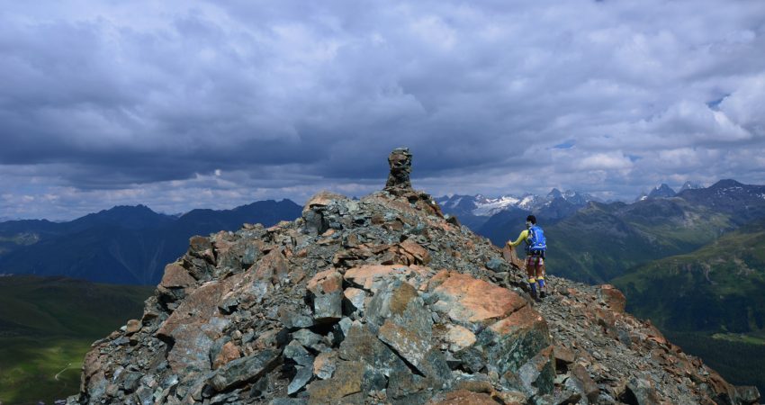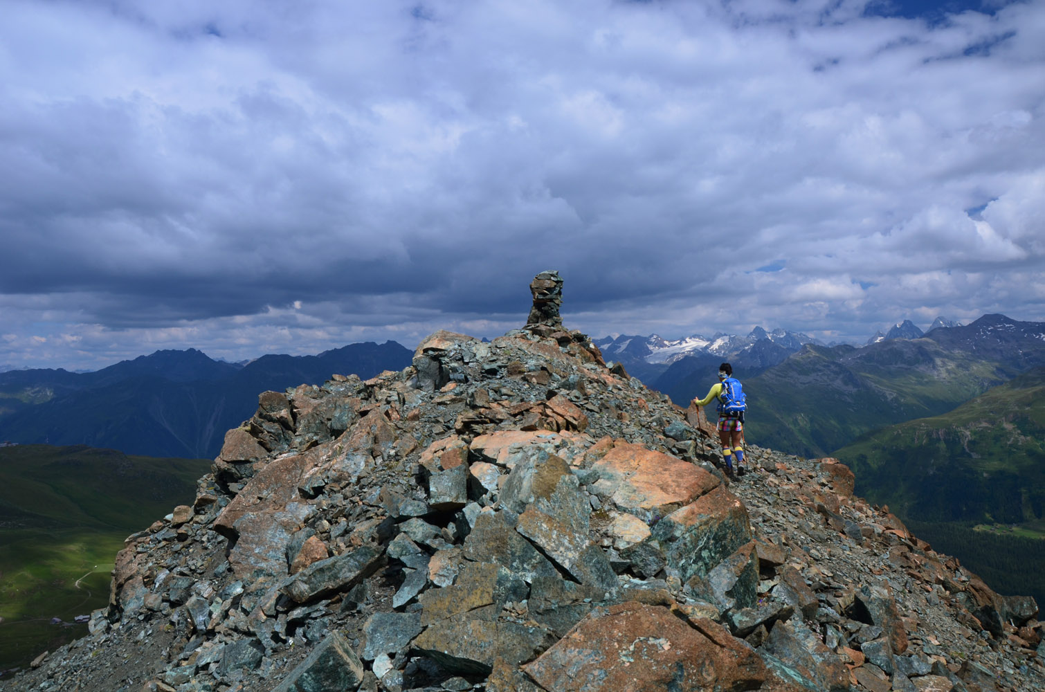 There are several options to extend this hike towards the east, for example by continuing along the ridge via the Schwarzhorn and Casanna. We simply wanted to return to Davos as it was our last day in the area, but fancied adding on a short scramble if possible. The Totalphorn, a minor peak along the end of a small craggy ridge that juts out towards Davos, served exactly that purpose. It looks quite incongruent in the otherwise mellow landscape of gentle slopes and meadows, and – as the name implies (“tot” means dead) – is completely devoid of any vegetation. The short moderate scramble along the busted up ridge took a little longer than expected, but was fun and added variety to the day.