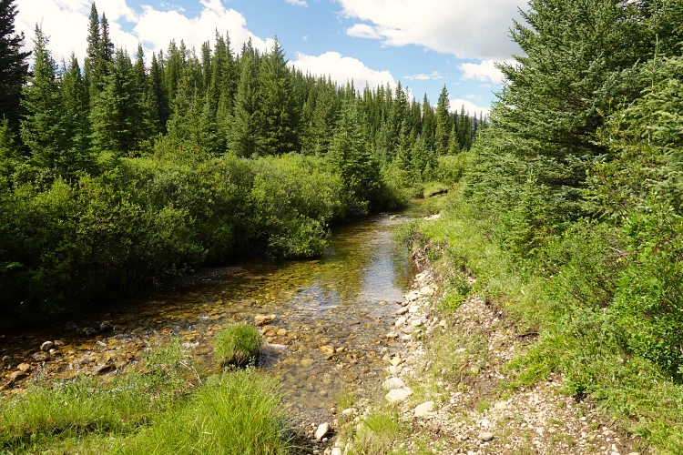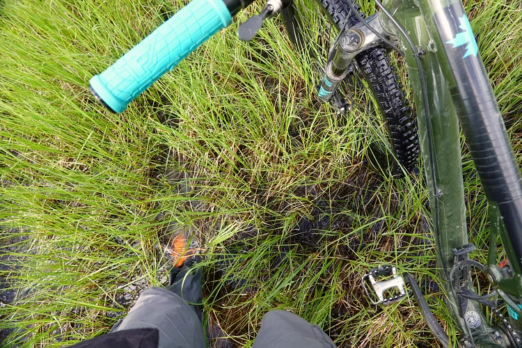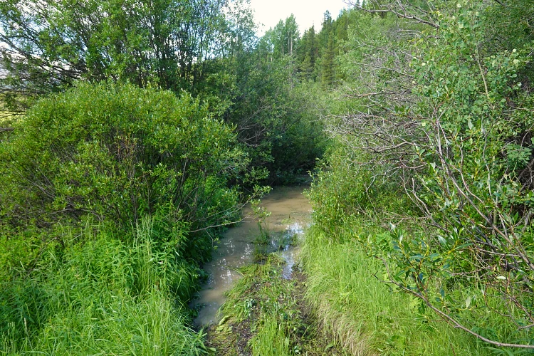 This is definitely a LONG outing for a day trip from Calgary! The drive alone is about 2.5 to 3 hours one-way. After starting out late from the Peppers Lake campground, I figured my mountain bike would help speed things up on the lengthy approach. There are basically a number of cutlines and OHV tracks that crisscross the foothills east of the mountain, and several approach variations are possible (e.g. Adam and Eph who approached from the NE a couple years later). I liked the Peppers Lake approach, but my bike was not very helpful as several parts of the initial tracks were boggy. You will most likely get your feet wet in these parts (as I definitely did), so perhaps the best time to do this trip is late fall or winter when the ground is frozen.